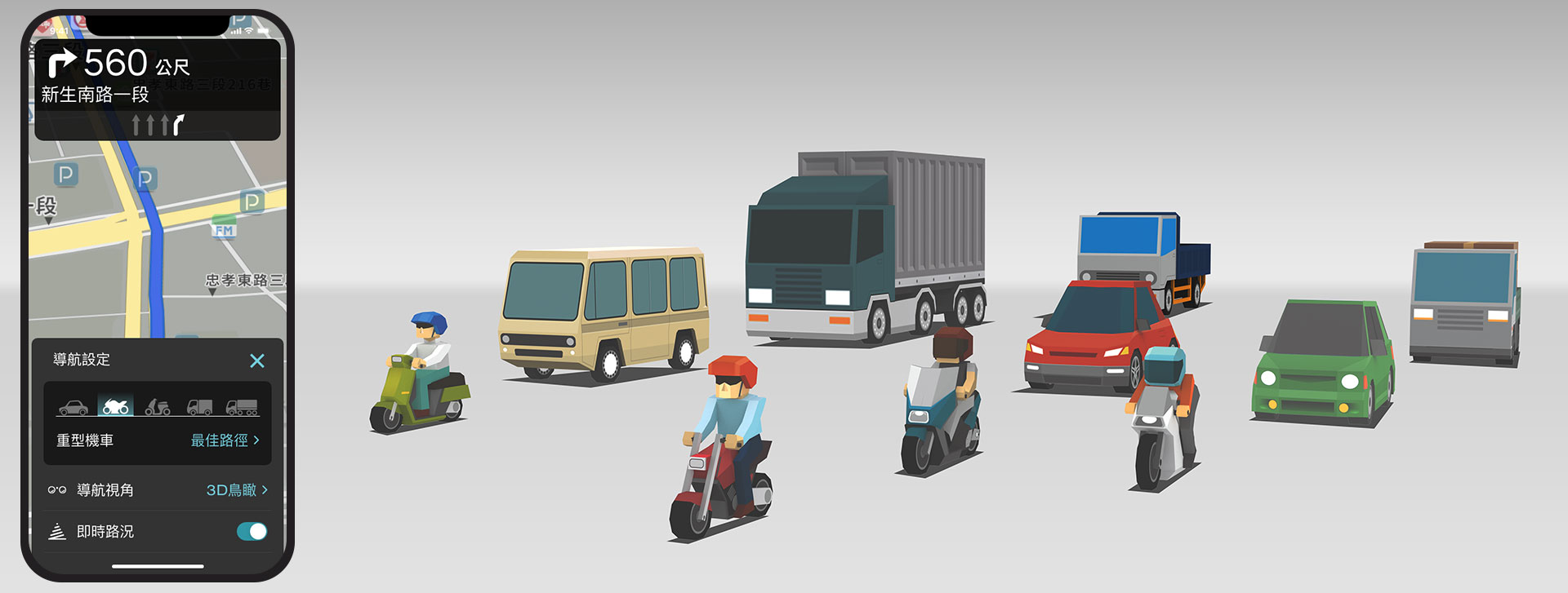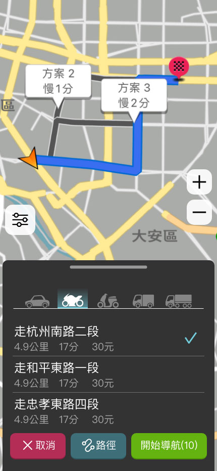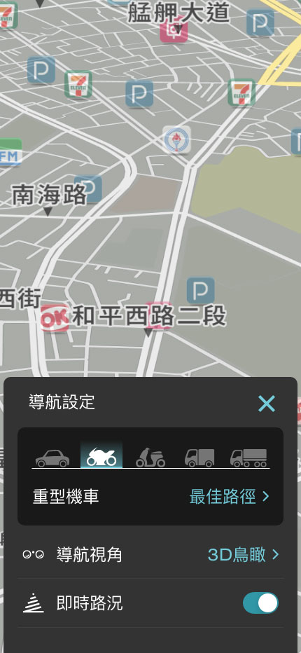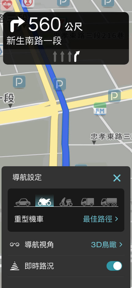 此外,「路徑規劃」頁也是,在確認路線同時,你就能一眼看出目前的「車種」設定,不僅直覺易用,更能確保你在出發前就選擇最適合的路線。